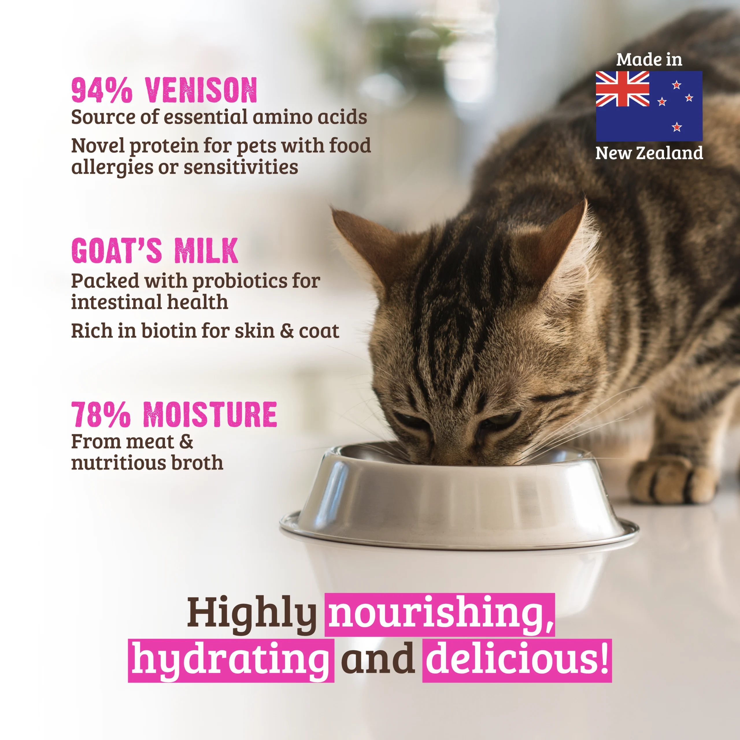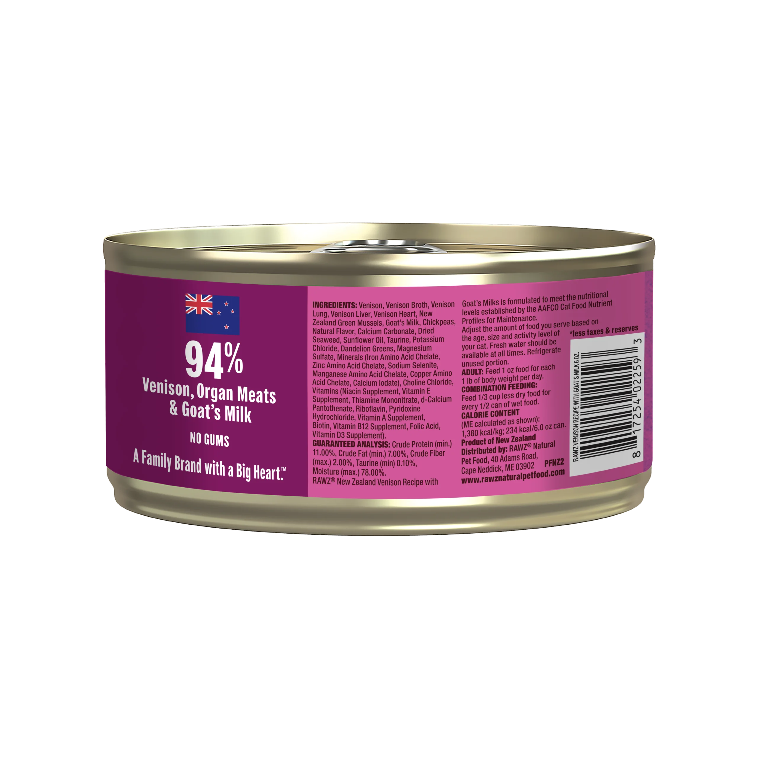 RAWZ® New Zealand Venison Recipe with Green Mussels is formulated to meet the nutritional levels established by the AAFCO Cat Food Nutrient Profiles for Maintenance.